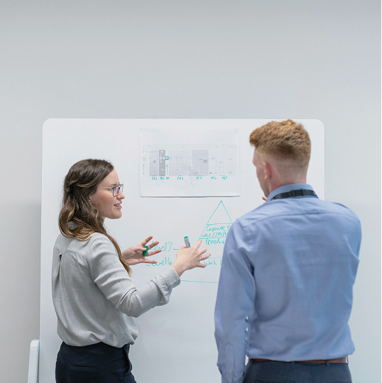 研修に慣れてきたら、クライアント企業への提案やプログラム改善など、自分の考えを実際のプロジェクトに反映していくステージです。